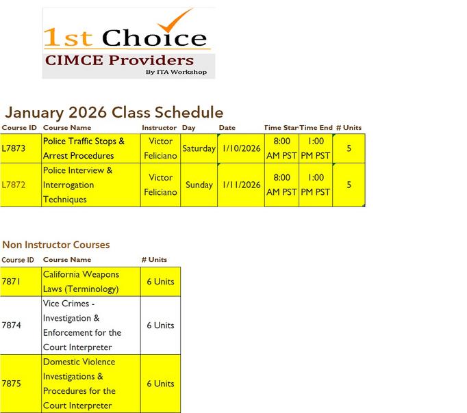 California CIMCE Classes